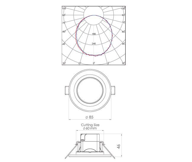 دنیز – چراغ روشنایی توکار بدنه مشکی– قطر 6 |